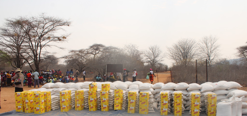 Picture taken at a food distribution point in one of the wards targeted by KMTC in 2023/2024 food assistance project. The project also had microprojects that were done through a food for asset approach.